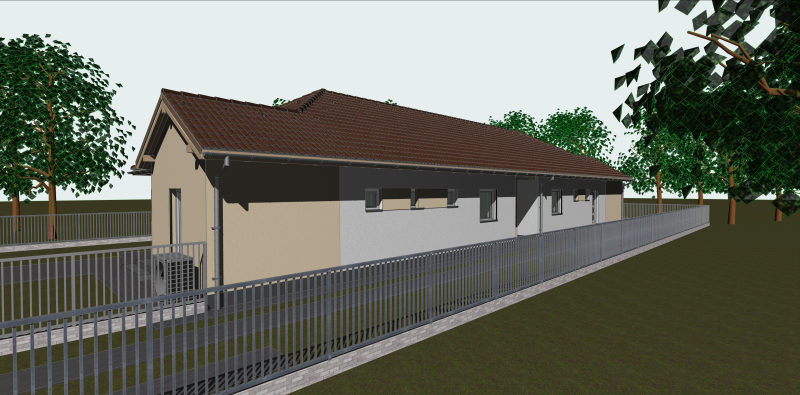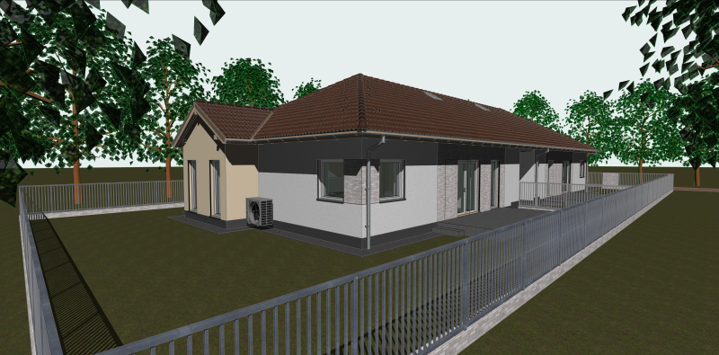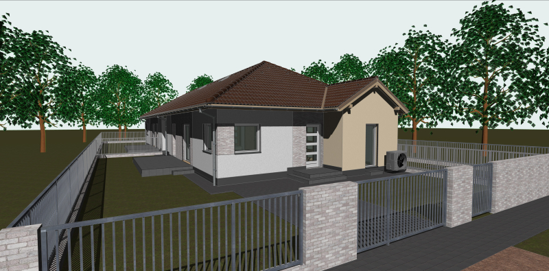 Műszaki járda: 20-40 cm beton a ház körül + a kerítéstől a bejáratig 100 cm