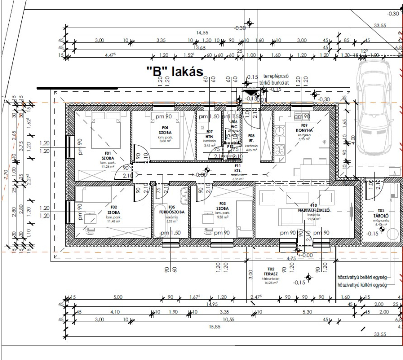 B LAKÁS Nettó 91 nm + Tároló 6,4nm Terasz: 14,25nm Telek: 400 nm