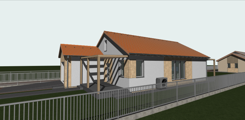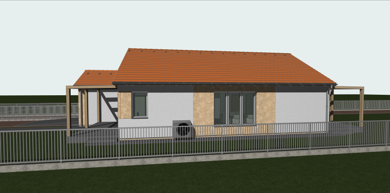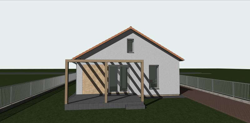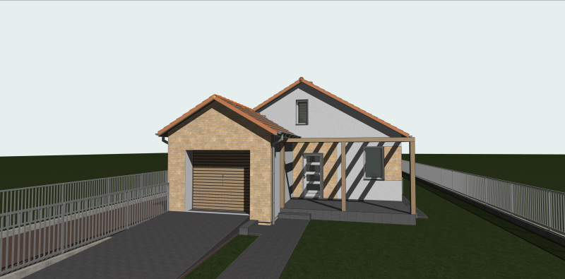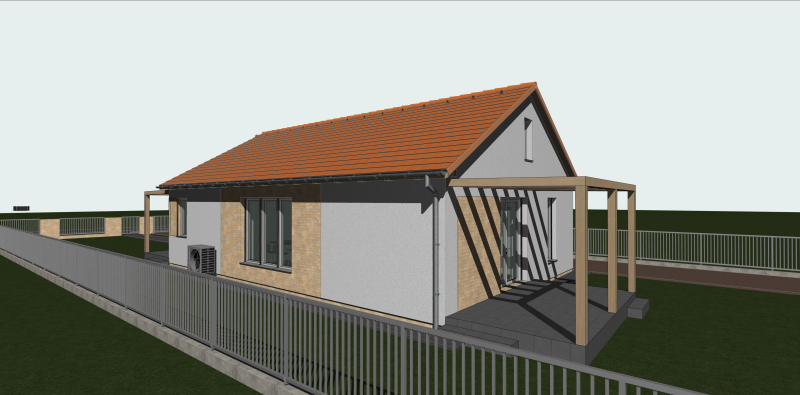 Műszaki járda: 60 cm beton a ház körül + a kerítéstől a bejáratig 100 cm