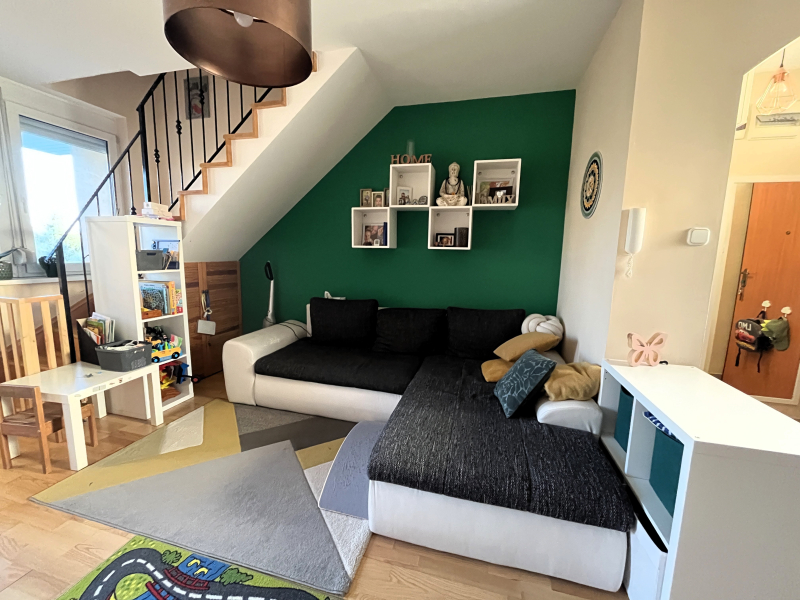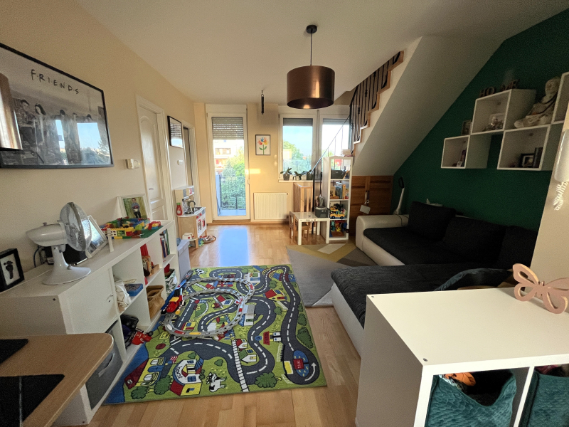 Újszerű, kertes, liftes téglaházban a 4. emeleten, belső két szintes, remek elrendezésű, nettó 71nm-es, 3 szobával, 2db erkéllyel, igény szerint gépkocsi beállóval rendelkezik.